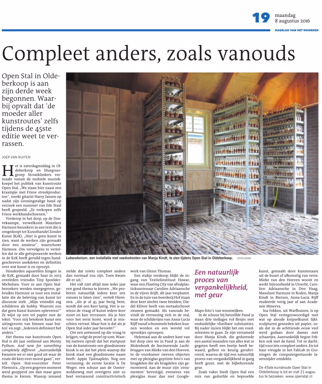 letterlijk de constante voedingsbodem voor haar bijzonder eigenzinnig werk. In deze context heeft zij begin mei het concept