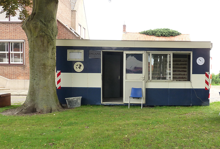 Een containerunit omgebouwd tot postkantoor. Metdeze transformatie-installaties wil Manja