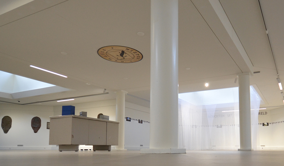 authenticiteit. Net zoals in een echt postkantoor. Met deze aan de commercie ontleende vormen van presentatie stelt zij de