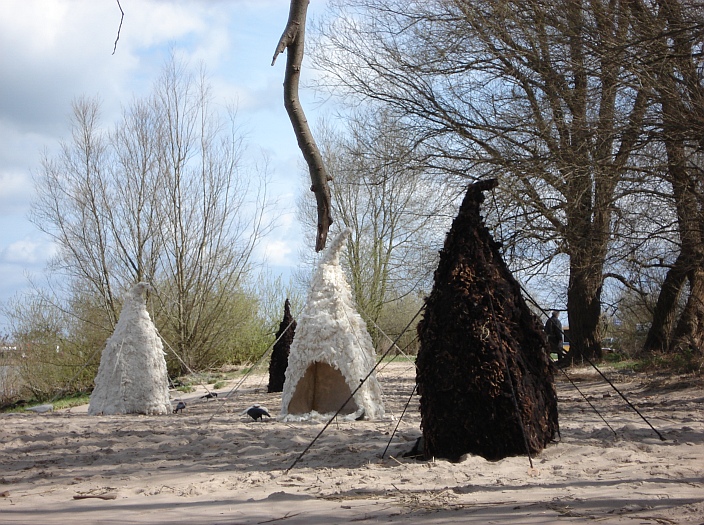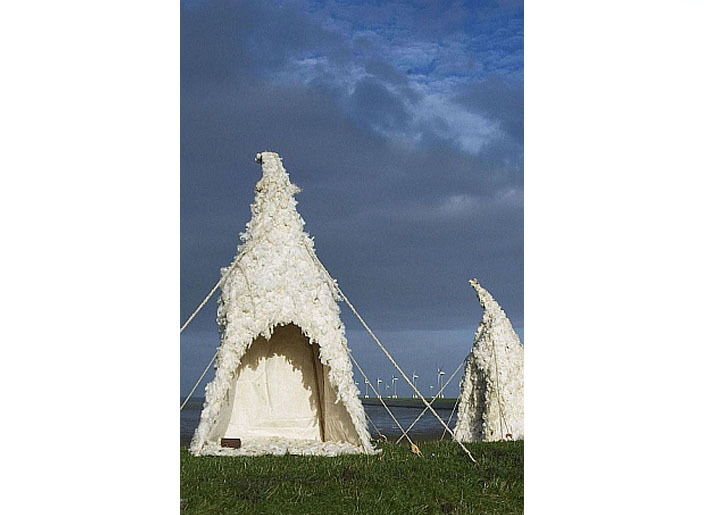 gestelde tijdsduur en afgebakend gebied heeft zij observatieposten in de vorm van kleine tenten als een museale site